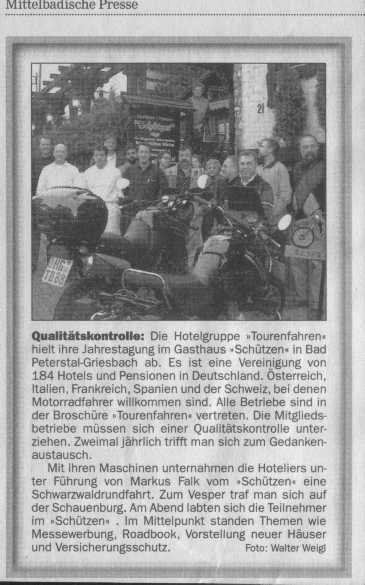 Von Herzen gerne verwöhnen wir unsere Gäste. Hier treffen sich Erholungssuchende aller Couleur: Kurgäste und Motorradfahrer, Wanderer und Sportbegeisterte...   Was sie alle eint, ist die Liebe zu unserer herrlichen Landschaft und so hat bei den geselligen Runden im "Schützen" jeder seine eigene Schwarzwaldgeschichte zu erzählen. Wir, die Familie Falk freuen uns auf Ihren Besuch und umsorgen Sie mit der typischen Schwarzwälder Gastlichkeit! Unsere Zimmer sind mit Dusche, WC, SAT-TV, und teilweise mit Balkon.