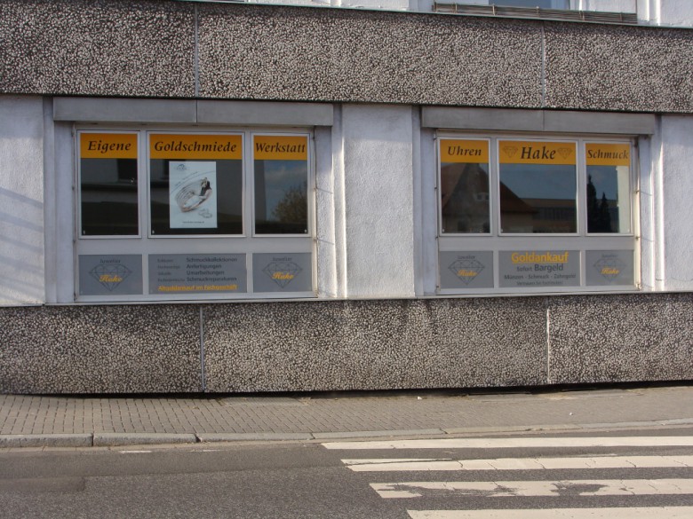 Uhren - Schmuck - Silberwaren - Schätzungen Der Goldschmied Fritz Hake eröffnete 1922 in der Saarstraße in Friedberg ein Juweliergeschäft. Schon 1926 konnte er größere Geschäftsräume in der Bismarckstraße 33 beziehen, wo der Sitz der Firma heute noch ist 1951 trat Willi Hake, der Sohn mit in die Firma ein. 46 Jahre später, 1997, konnten Willi Hake und Tochter Claudia Hake die Geschäftsräume vergrößern und bauten das Geschäft zum heutigen Ambiente mit Goldschmiedeatelier um. Reparaturen von Uhren und Schmuck hat in unserem Hause eine lange Tradition. Wir reparieren Ihren Schmuck oder arbeiten ihn nach Ihren Wünschen um, fädeln Ihre Perlen und Steinketten oder arbeiten Sie um je nach Wunsch und Möglichkeiten. Wir reparieren für Sie Armbanduhren, Tischuhren, Wanduhren und Standuhren. Wir kaufen Ihr Altgold an, Sie erhalten sofort Bargeld oder wir verrechnen es mit einem Neukauf oder einer Umarbeitung. Kommissionen: Längst nicht alle Schmuckstücke gehören zum Altgold, wir bewerten und verkaufen Ihr Schmuckstücke und Uhren in Ihrem Auftrag. Privatgutachten: Wir fertigen für Sie Privatgutachten für Ihre Erbschaftsangelegenheiten oder für Ihre Versicherungen auch nach einem Einbruchdiebstahl ist dies möglich