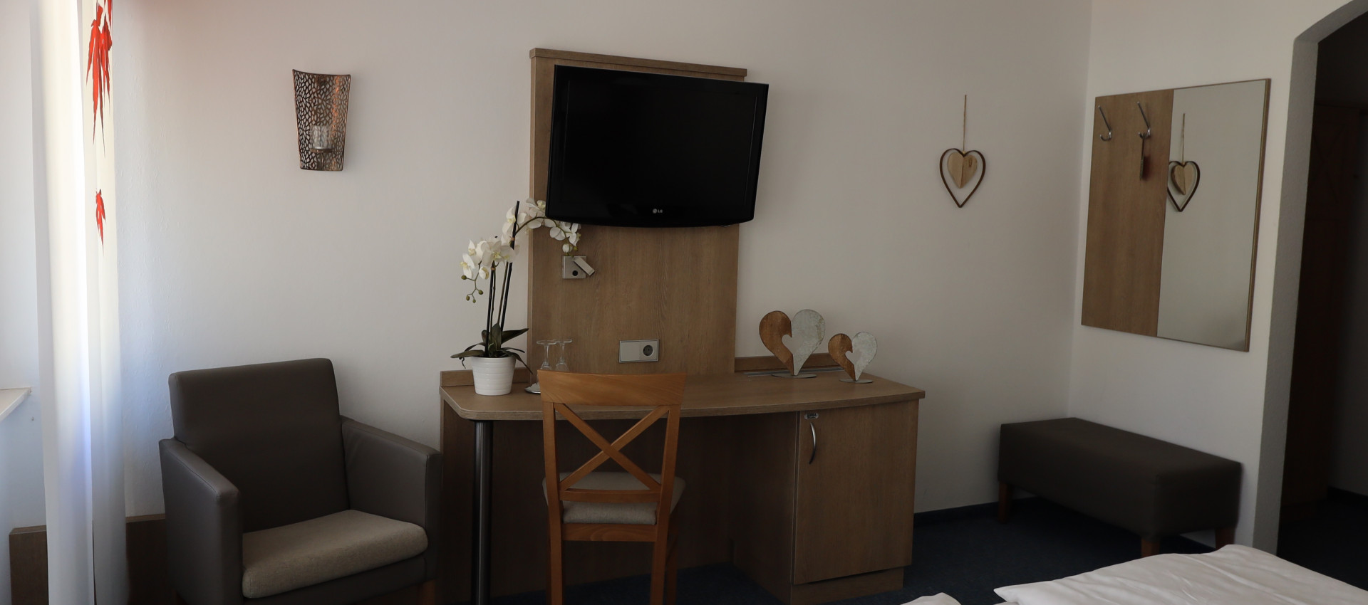 Unsere Kategorie 1 bietet Ihnen ein helles und freundliches Hotelzimmer mit einer Sitzgelegenheit und Balkon oder Terrasse. Diese Zimmerkategorie ist ideal für kürzere Aufenthalte. 19 qm Grundfläche.