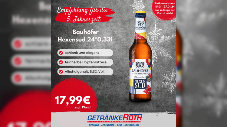 Entdecken Sie jetzt den Bauhöfer Hexensud und genießen Sie eine außergewöhnliche Biererfahrung, die Ihnen die 5. Jahreszeit versüßt. Schlank, elegant und voller Geschmack - lassen Sie sich von unserem Hexensud verführen!