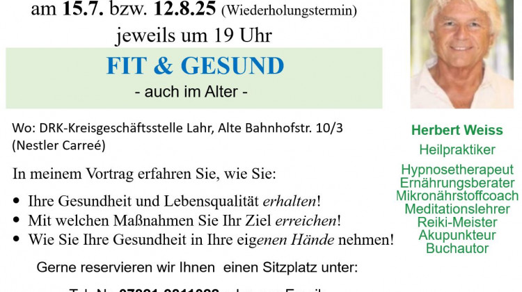 Übermorgen um 19 Uhr in Lahr: Kostenloser Vortrag "Fit & gesund - auch im Alter"