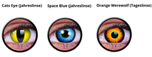 Raubkatze Anime Figuren oder einfach nur knallig bunt auch diese Linsen erhalten Sie von uns mit und ohne Stärken.